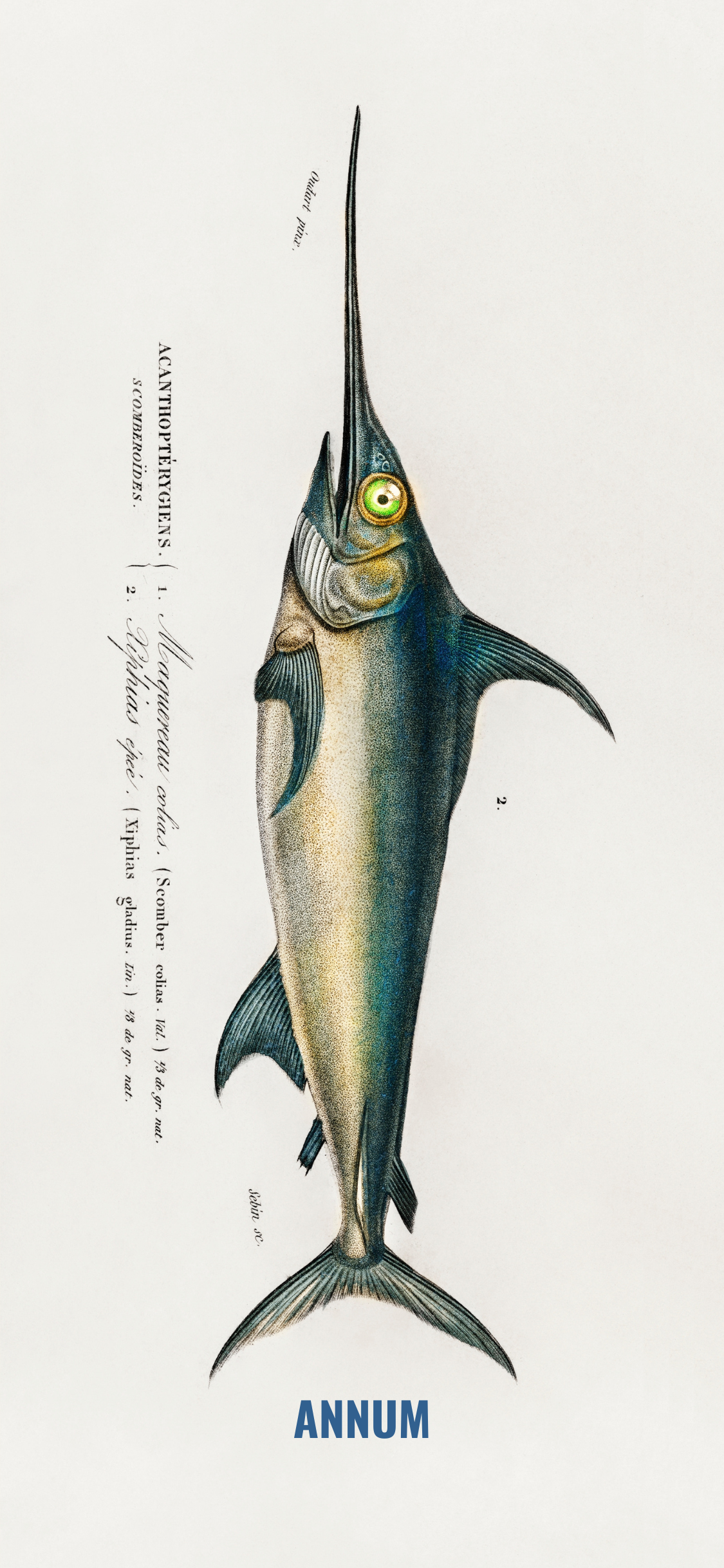 Swordfish illustrated by Charles Dessalines D’ Orbigny. From the 1892 edition of Dictionnaire Universel D’histoire Naturelle. Public domain.