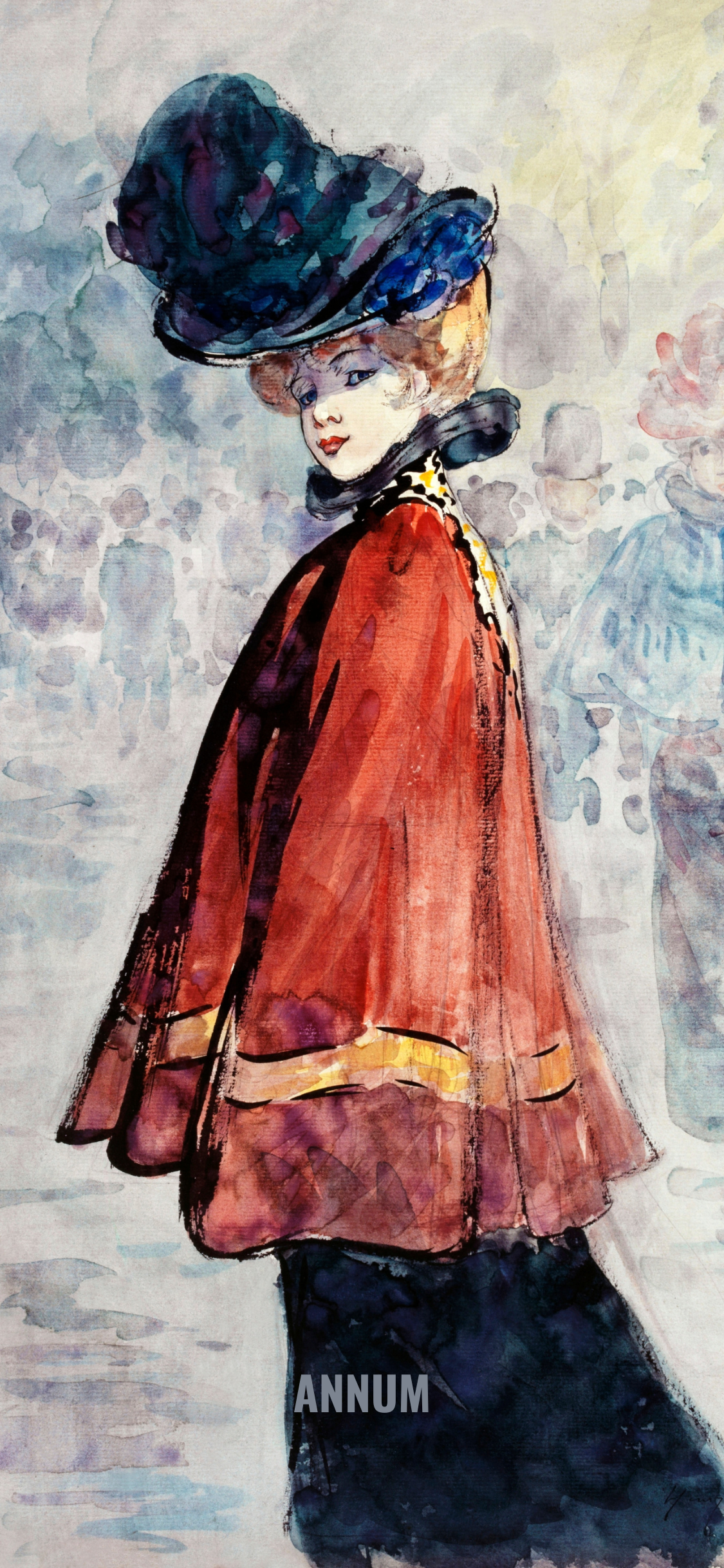 Elegant in red cape (1890-1900) by Henry Somm. Original from The Public Institution Paris Musées. Public domain.