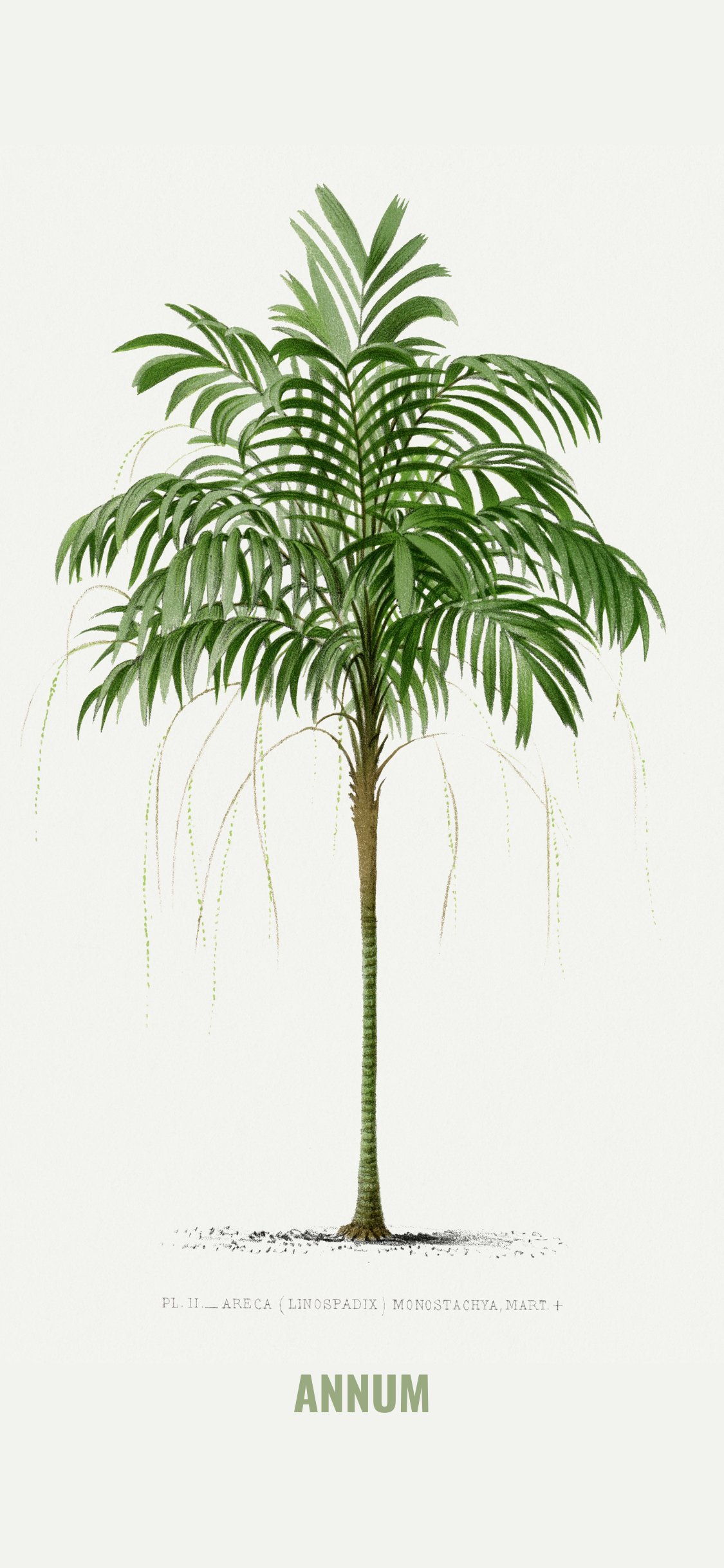 Vintage palm tree illustration by Oswald de Kerchove de Denterghem. From the Les Palmiers Histoire Iconographique (1878). Public domain.