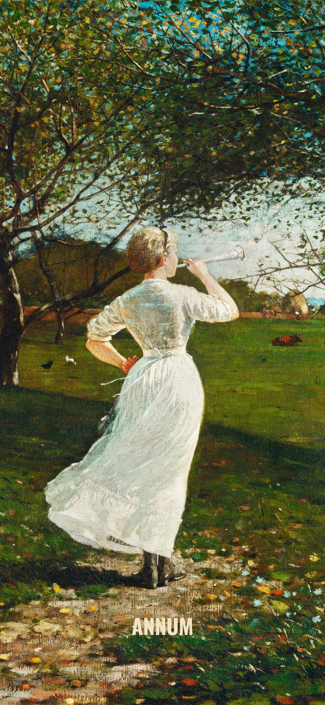 The Dinner Horn, Blowing the Horn at Seaside (1870) by Winslow Homer. Original from The National Gallery of Art. Public domain.