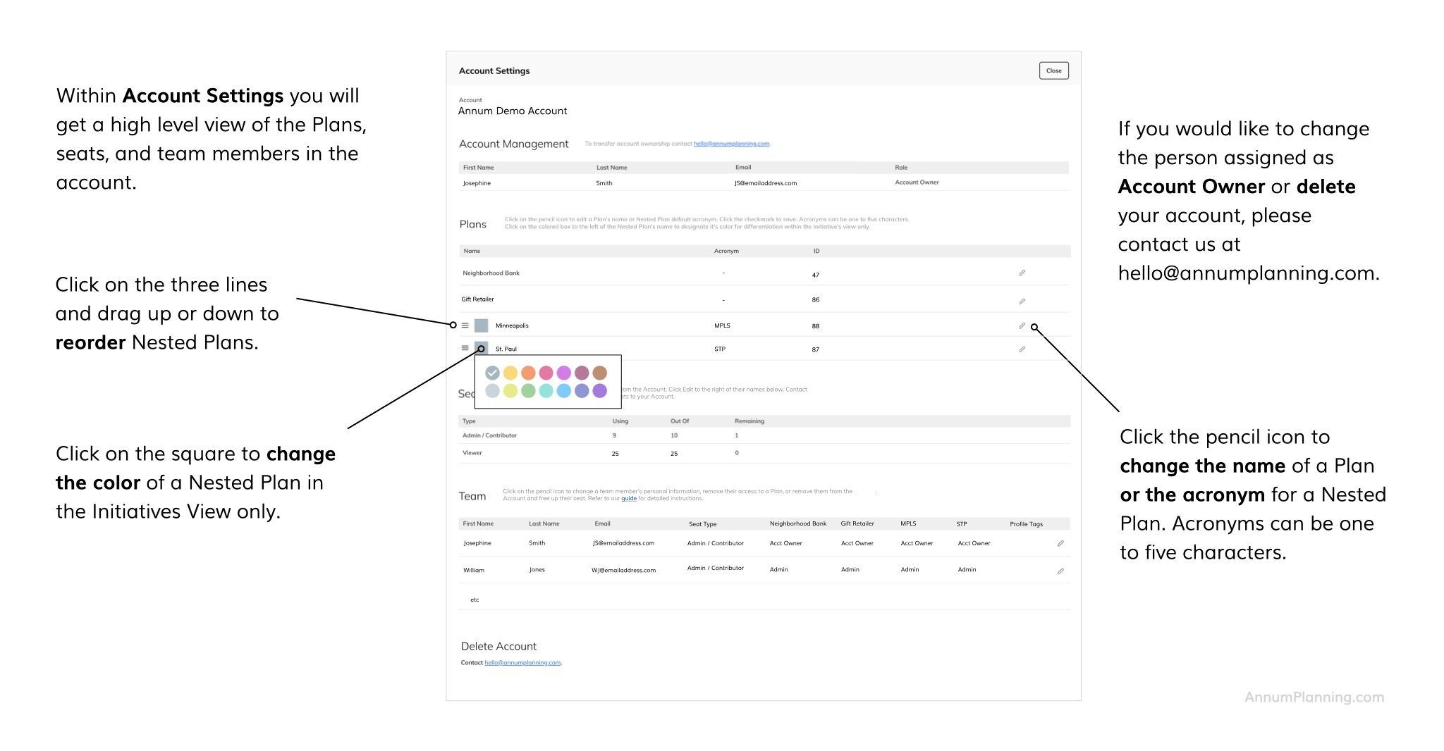 If you would like to change the person assigned as Account Owner, please contact us at hello@annumplanning.com.